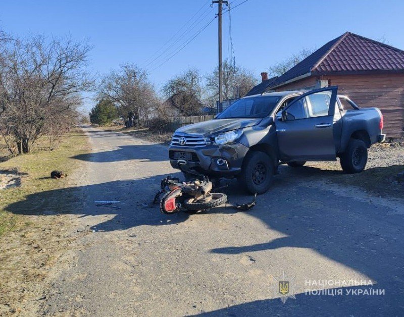 Керманич пікапа виїжджав із території домоволодіння і не помітив мотоцикла, спричинивши ДТП. Унаслідок зіткнення постраждав 15-річний водій двоколісного. Інцидент стався в лютому цьогоріч у селі Угли.
